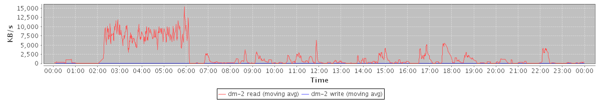 avg(dm-2 read) = 1381.65 avg(dm-2 write) = 0.50
