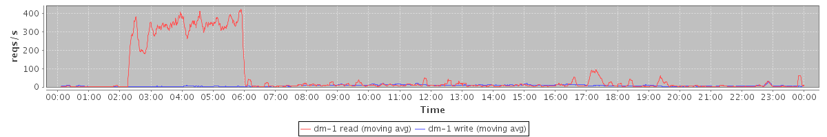 avg(dm-1 read) = 2144.27 avg(dm-1 write) = 189.20