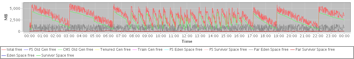 avg(total free) = 3337.45 avg(PS Old Gen free) = 0.00 avg(CMS Old Gen free) = 2445.32 avg(Tenured Gen free) = 0.00 avg(Train Gen free) = 0.00 avg(PS Eden Space free) = 0.00 avg(PS Survivor Space free) = 0.00 avg(Par Eden Space free) = 820.76 avg(Par Survivor Space free) = 71.37 avg(Eden Space free) = 0.00 avg(Survivor Space free) = 0.00