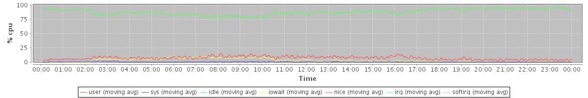 avg(user) = 7.40 avg(sys) = 0.77 avg(idle) = 88.32 avg(iowait) = 3.39 avg(nice) = 0.00 avg(irq) = 0.00 avg(softirq) = 0.11