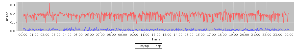 avg(mysql) = 0.18 avg(ldap) = 0.01