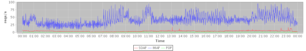Host zm01.stanford.edu: Mailboxd: Request Rate by Client Protocol