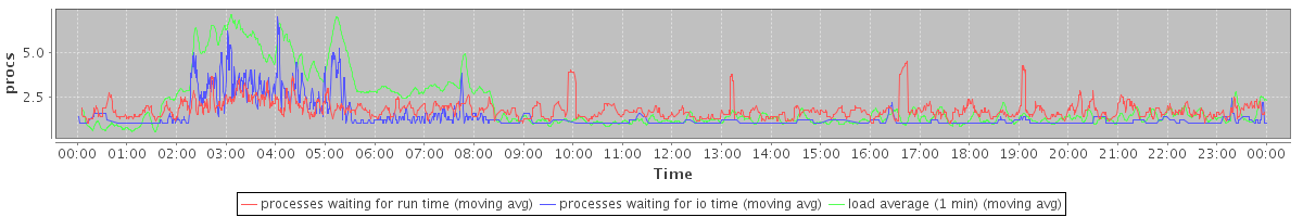 avg(processes waiting for run time) = 1.05 avg(processes waiting for io time) = 0.70 avg(load average (1 min)) = 2.06