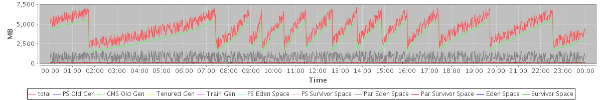 avg(total free) = 3364.78 avg(PS Old Gen free) = 0.00 avg(CMS Old Gen free) = 2513.78 avg(Tenured Gen free) = 0.00 avg(Train Gen free) = 0.00 avg(PS Eden Space free) = 0.00 avg(PS Survivor Space free) = 0.00 avg(Par Eden Space free) = 787.45 avg(Par Survivor Space free) = 63.56 avg(Eden Space free) = 0.00 avg(Survivor Space free) = 0.00