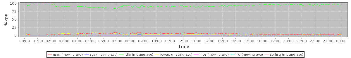 avg(user) = 4.30 avg(sys) = 0.60 avg(idle) = 92.75 avg(iowait) = 2.29 avg(nice) = 0.00 avg(irq) = 0.00 avg(softirq) = 0.06