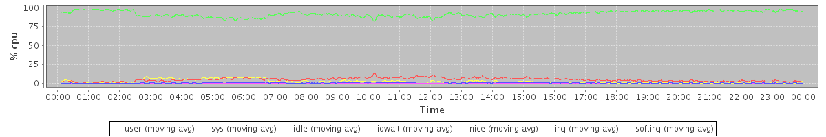 avg(user) = 4.73 avg(sys) = 0.65 avg(idle) = 92.07 avg(iowait) = 2.46 avg(nice) = 0.00 avg(irq) = 0.00 avg(softirq) = 0.08