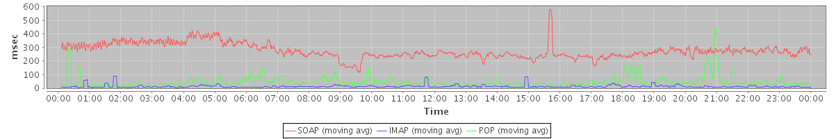 Host zm09.stanford.edu: Mailboxd: Response Time by Client Protocol