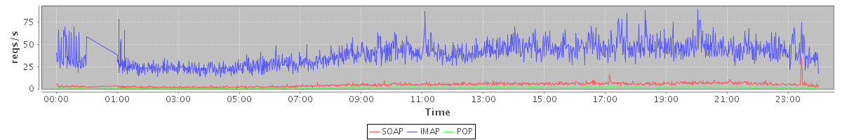 Host zm04.stanford.edu: Mailboxd: Request Rate by Client Protocol
