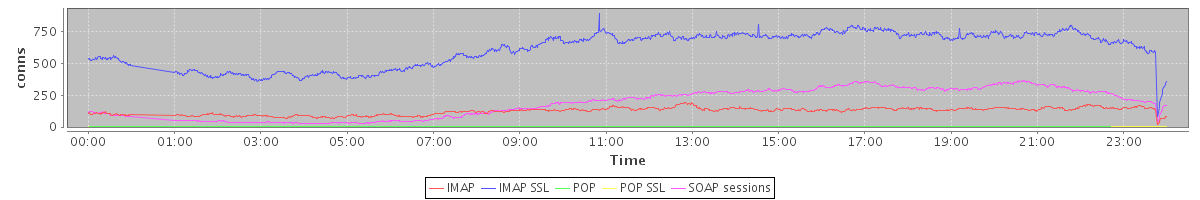 Host zm08.stanford.edu: Mailboxd: Active Connections by Client Protocol