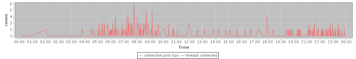 avg(connection pool size) = 0.52 avg(threads connected) = 0.00