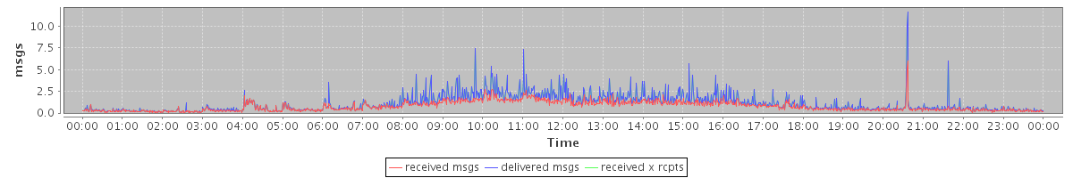 avg(received msgs) = 0.76 avg(delivered msgs) = 1.07 avg(received x rcpts) = 1.07