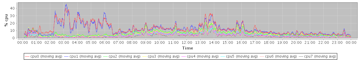 avg(cpu0) = 1.76 avg(cpu1) = 1.61 avg(cpu2) = 1.26 avg(cpu3) = 1.15 avg(cpu4) = 0.88 avg(cpu5) = 0.76 avg(cpu6) = 0.57 avg(cpu7) = 0.55