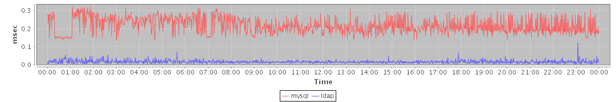 avg(mysql) = 0.22 avg(ldap) = 0.02