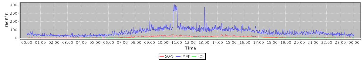 Host zm01.stanford.edu: Mailboxd: Request Rate by Client Protocol