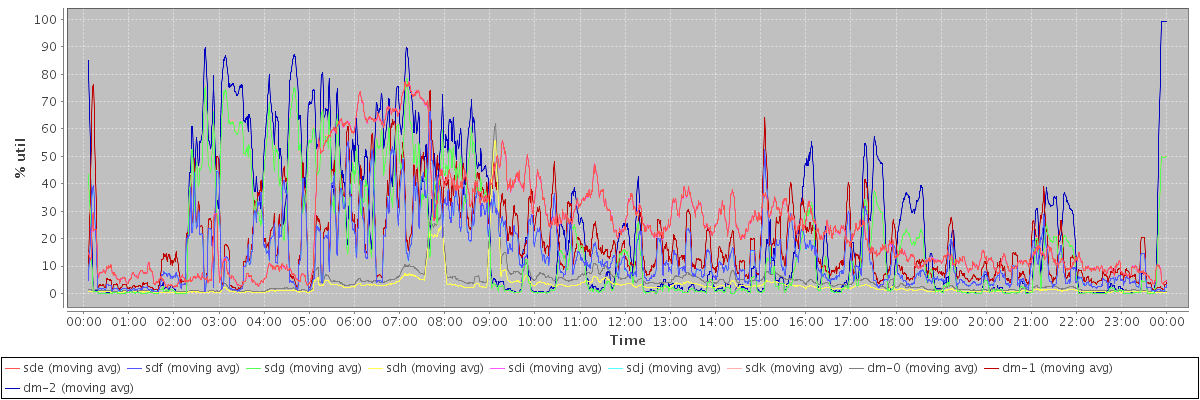 avg(sde) = 24.07 avg(sdf) = 14.09 avg(sdg) = 17.72 avg(sdh) = 2.78 avg(sdi) = 24.06 avg(sdj) = 14.08 avg(sdk) = 17.73 avg(dm-0) = 4.31 avg(dm-1) = 18.29 avg(dm-2) = 23.68