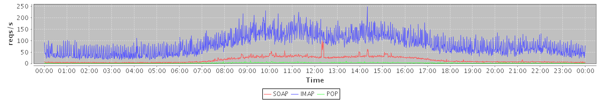 Host zm09.stanford.edu: Mailboxd: Request Rate by Client Protocol