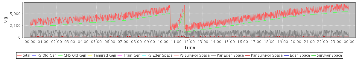 avg(total free) = 3464.37 avg(PS Old Gen free) = 0.00 avg(CMS Old Gen free) = 2634.57 avg(Tenured Gen free) = 0.00 avg(Train Gen free) = 0.00 avg(PS Eden Space free) = 0.00 avg(PS Survivor Space free) = 0.00 avg(Par Eden Space free) = 781.77 avg(Par Survivor Space free) = 48.02 avg(Eden Space free) = 0.00 avg(Survivor Space free) = 0.00