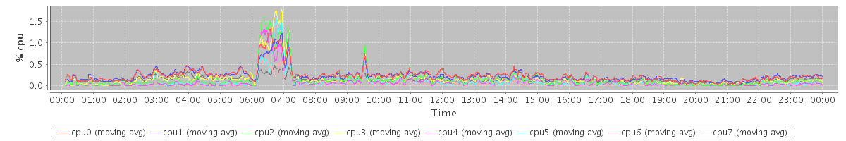 avg(cpu0) = 0.24 avg(cpu1) = 0.23 avg(cpu2) = 0.15 avg(cpu3) = 0.17 avg(cpu4) = 0.10 avg(cpu5) = 0.09 avg(cpu6) = 0.05 avg(cpu7) = 0.13