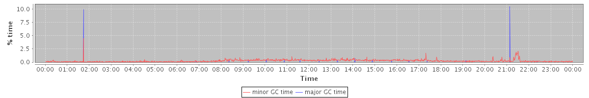 avg(minor GC time) = 0.25 avg(major GC time) = 0.02