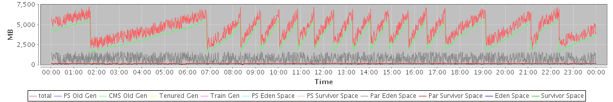 avg(total) = 4550.96 avg(PS Old Gen) = 0.00 avg(CMS Old Gen) = 3616.24 avg(Tenured Gen) = 0.00 avg(Train Gen) = 0.00 avg(PS Eden Space) = 0.00 avg(PS Survivor Space) = 0.00 avg(Par Eden Space) = 788.35 avg(Par Survivor Space) = 146.37 avg(Eden Space) = 0.00 avg(Survivor Space) = 0.00