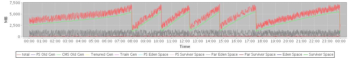 avg(total) = 4555.65 avg(PS Old Gen) = 0.00 avg(CMS Old Gen) = 3601.01 avg(Tenured Gen) = 0.00 avg(Train Gen) = 0.00 avg(PS Eden Space) = 0.00 avg(PS Survivor Space) = 0.00 avg(Par Eden Space) = 798.60 avg(Par Survivor Space) = 156.05 avg(Eden Space) = 0.00 avg(Survivor Space) = 0.00