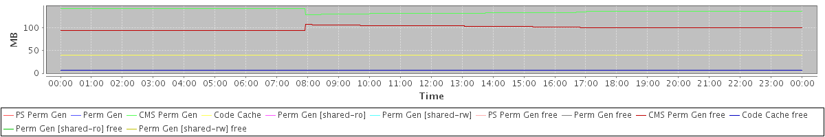 avg(PS Perm Gen) = 0.00 avg(Perm Gen) = 0.00 avg(CMS Perm Gen) = 136.93 avg(Code Cache) = 40.17 avg(Perm Gen [shared-ro]) = 0.00 avg(Perm Gen [shared-rw]) = 0.00 avg(PS Perm Gen free) = 0.00 avg(Perm Gen free) = 0.00 avg(CMS Perm Gen free) = 99.75 avg(Code Cache free) = 6.45 avg(Perm Gen [shared-ro] free) = 0.00 avg(Perm Gen [shared-rw] free) = 0.00