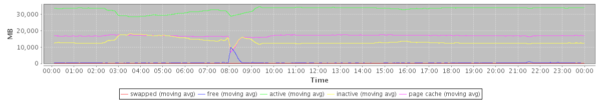 avg(swapped) = 16.83 avg(free) = 482.45 avg(active) = 33048.35 avg(inactive) = 13363.69 avg(page cache) = 16890.48