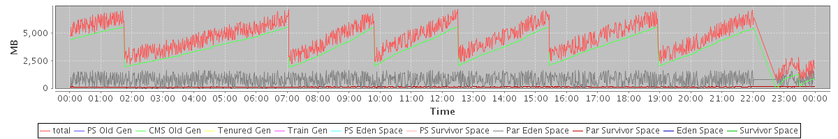 avg(total free) = 3266.65 avg(PS Old Gen free) = 0.00 avg(CMS Old Gen free) = 2371.85 avg(Tenured Gen free) = 0.00 avg(Train Gen free) = 0.00 avg(PS Eden Space free) = 0.00 avg(PS Survivor Space free) = 0.00 avg(Par Eden Space free) = 803.11 avg(Par Survivor Space free) = 91.69 avg(Eden Space free) = 0.00 avg(Survivor Space free) = 0.00