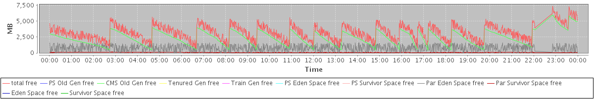 avg(total free) = 3231.25 avg(PS Old Gen free) = 0.00 avg(CMS Old Gen free) = 2350.19 avg(Tenured Gen free) = 0.00 avg(Train Gen free) = 0.00 avg(PS Eden Space free) = 0.00 avg(PS Survivor Space free) = 0.00 avg(Par Eden Space free) = 802.23 avg(Par Survivor Space free) = 78.82 avg(Eden Space free) = 0.00 avg(Survivor Space free) = 0.00