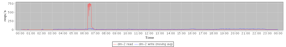 avg(dm-2 read) = 381.42 avg(dm-2 write) = 764.93