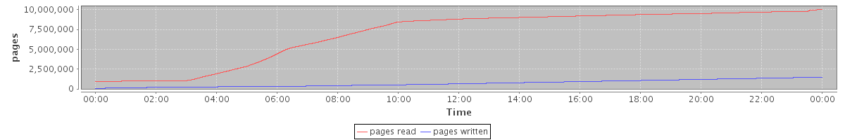 avg(pages read) = 6917396.81 avg(pages written) = 703262.46