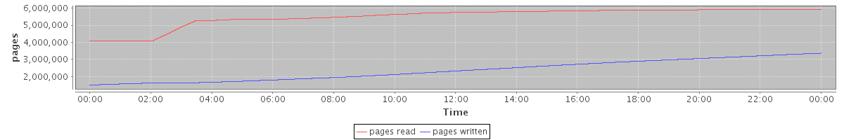 avg(pages read) = 5503837.94 avg(pages written) = 2356408.44