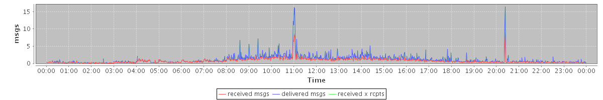 avg(received msgs) = 0.75 avg(delivered msgs) = 1.08 avg(received x rcpts) = 1.08