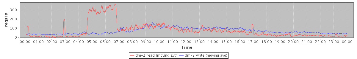 avg(dm-3 read) = 1840.06 avg(dm-3 write) = 0.62