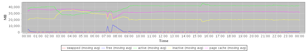 avg(swapped) = 17.92 avg(free) = 894.54 avg(active) = 39018.20 avg(inactive) = 22639.21 avg(page cache) = 32875.60