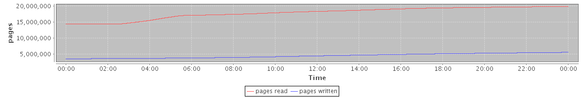 avg(pages read) = 17916516.09 avg(pages written) = 4412762.77