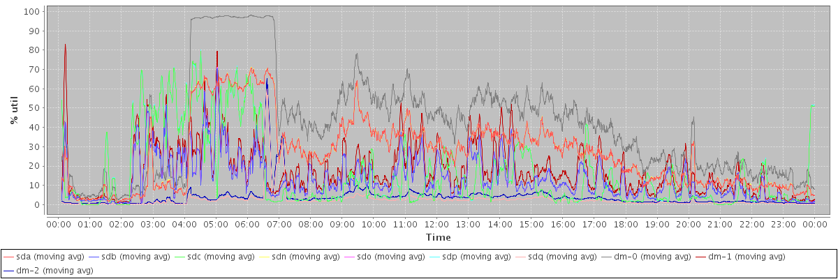 avg(sda) = 26.57 avg(sdb) = 13.26 avg(sdc) = 16.05 avg(sdn) = 26.60 avg(sdo) = 13.28 avg(sdp) = 16.07 avg(sdq) = 2.51 avg(dm-0) = 40.83 avg(dm-1) = 17.42 avg(dm-2) = 3.80