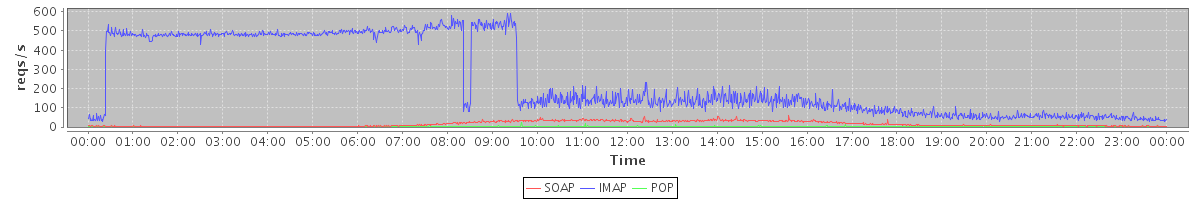 Host zm04.stanford.edu: Mailboxd: Request Rate by Client Protocol