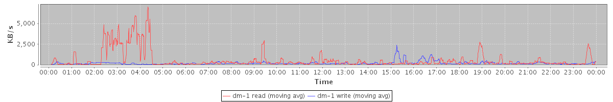 avg(dm-1 read) = 45.82 avg(dm-1 write) = 19.27
