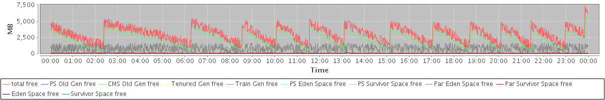 avg(total free) = 3027.81 avg(PS Old Gen free) = 0.00 avg(CMS Old Gen free) = 2169.93 avg(Tenured Gen free) = 0.00 avg(Train Gen free) = 0.00 avg(PS Eden Space free) = 0.00 avg(PS Survivor Space free) = 0.00 avg(Par Eden Space free) = 800.49 avg(Par Survivor Space free) = 57.39 avg(Eden Space free) = 0.00 avg(Survivor Space free) = 0.00