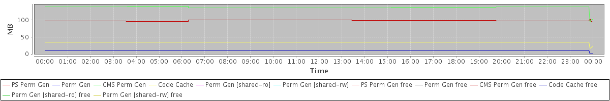 avg(PS Perm Gen) = 0.00 avg(Perm Gen) = 0.00 avg(CMS Perm Gen) = 136.89 avg(Code Cache) = 34.99 avg(Perm Gen [shared-ro]) = 0.00 avg(Perm Gen [shared-rw]) = 0.00 avg(PS Perm Gen free) = 0.00 avg(Perm Gen free) = 0.00 avg(CMS Perm Gen free) = 98.22 avg(Code Cache free) = 11.40 avg(Perm Gen [shared-ro] free) = 0.00 avg(Perm Gen [shared-rw] free) = 0.00