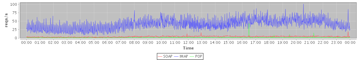 Host zm09.stanford.edu: Mailboxd: Request Rate by Client Protocol