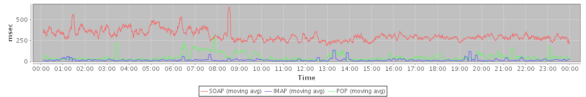 Host zm09.stanford.edu: Mailboxd: Response Time by Client Protocol