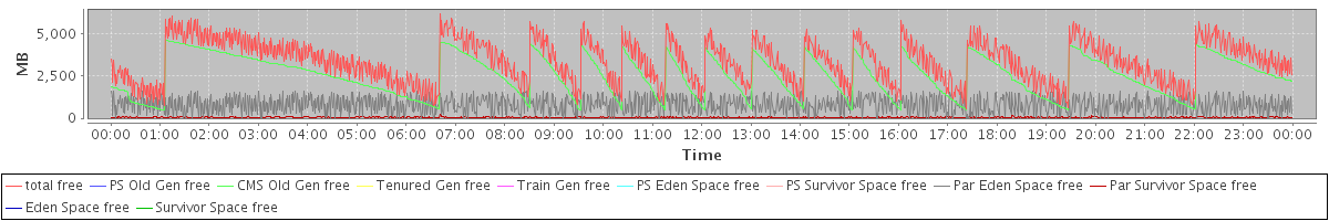 avg(total free) = 3388.22 avg(PS Old Gen free) = 0.00 avg(CMS Old Gen free) = 2526.54 avg(Tenured Gen free) = 0.00 avg(Train Gen free) = 0.00 avg(PS Eden Space free) = 0.00 avg(PS Survivor Space free) = 0.00 avg(Par Eden Space free) = 812.09 avg(Par Survivor Space free) = 49.59 avg(Eden Space free) = 0.00 avg(Survivor Space free) = 0.00