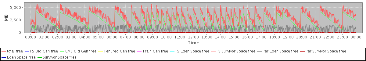 avg(total free) = 3244.97 avg(PS Old Gen free) = 0.00 avg(CMS Old Gen free) = 2391.99 avg(Tenured Gen free) = 0.00 avg(Train Gen free) = 0.00 avg(PS Eden Space free) = 0.00 avg(PS Survivor Space free) = 0.00 avg(Par Eden Space free) = 801.77 avg(Par Survivor Space free) = 51.20 avg(Eden Space free) = 0.00 avg(Survivor Space free) = 0.00