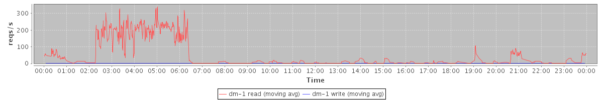 avg(dm-1 read) = 1763.77 avg(dm-1 write) = 0.19