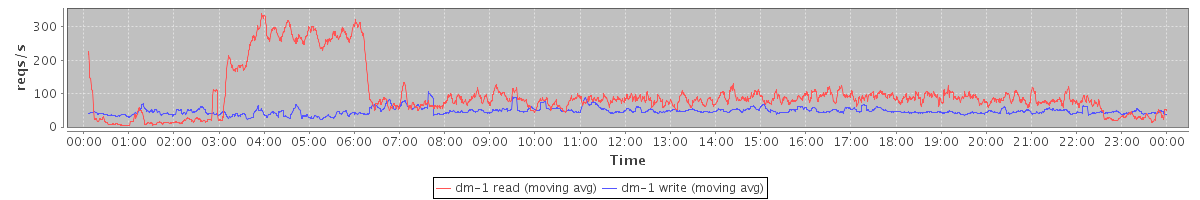 avg(dm-1 read) = 96.52 avg(dm-1 write) = 47.34