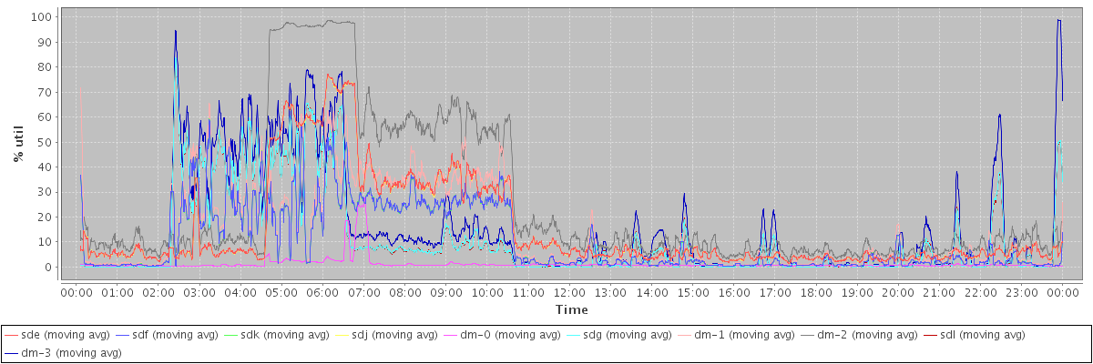 avg(sde) = 15.24 avg(sdf) = 10.73 avg(sdk) = 10.71 avg(sdj) = 15.18 avg(dm-0) = 1.23 avg(sdg) = 11.00 avg(dm-1) = 13.83 avg(dm-2) = 24.76 avg(sdl) = 10.96 avg(dm-3) = 14.76