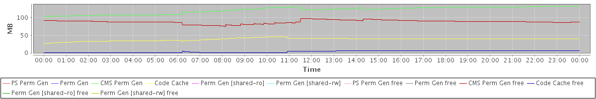 avg(PS Perm Gen) = 0.00 avg(Perm Gen) = 0.00 avg(CMS Perm Gen) = 121.71 avg(Code Cache) = 38.61 avg(Perm Gen [shared-ro]) = 0.00 avg(Perm Gen [shared-rw]) = 0.00 avg(PS Perm Gen free) = 0.00 avg(Perm Gen free) = 0.00 avg(CMS Perm Gen free) = 88.45 avg(Code Cache free) = 3.68 avg(Perm Gen [shared-ro] free) = 0.00 avg(Perm Gen [shared-rw] free) = 0.00