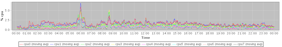 avg(cpu0) = 0.24 avg(cpu1) = 0.27 avg(cpu2) = 0.18 avg(cpu3) = 0.16 avg(cpu4) = 0.12 avg(cpu5) = 0.10 avg(cpu6) = 0.07 avg(cpu7) = 0.05